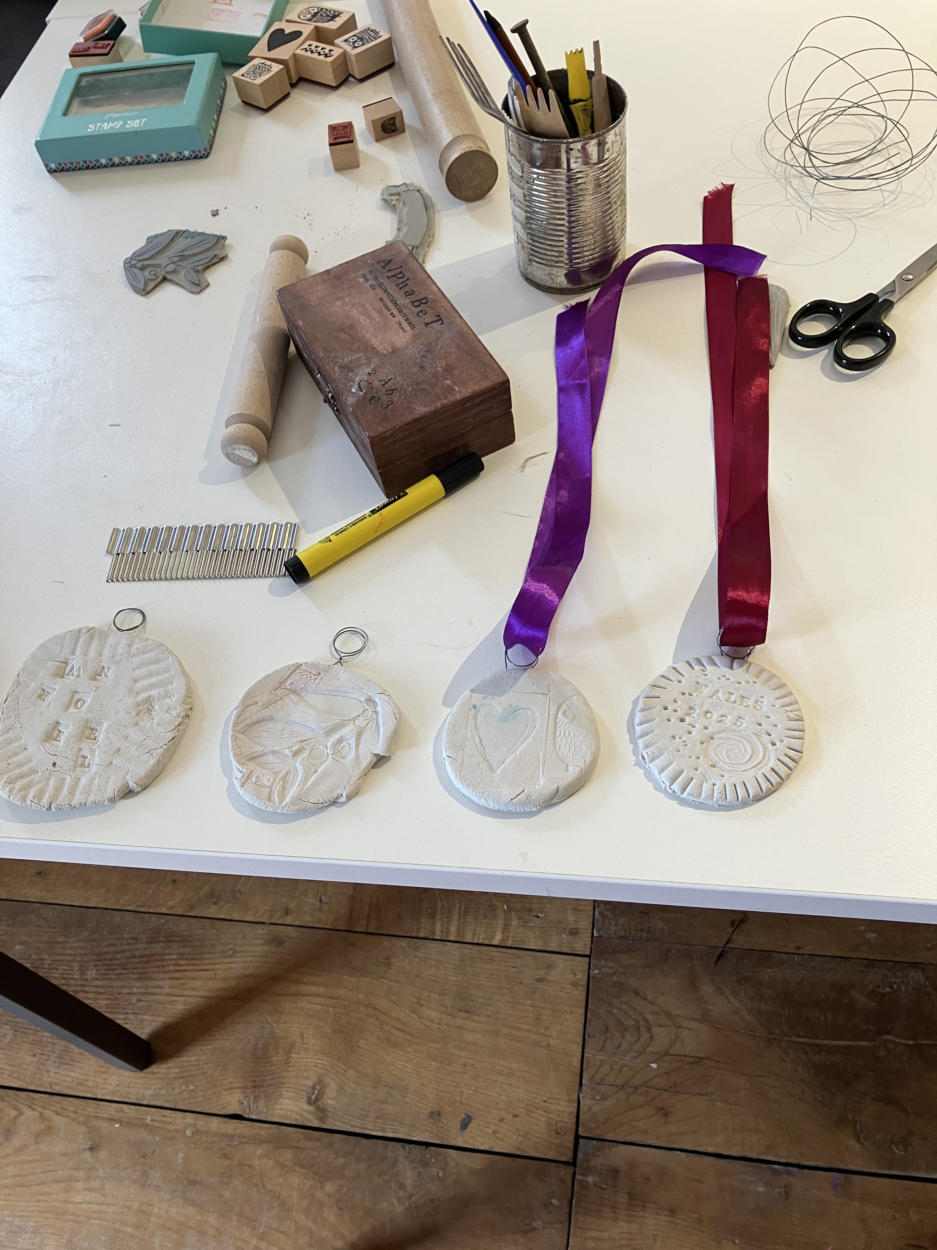 Hay Castle gave Vivat Matriarchia their Clore Learning Space for family workshops on Thurs 14th August. Using the processes drypoint, shadow projections and clay medal-making to link with the current Perihelia exhibition in the Castle’s History Cabinet. Adults and children alike enjoyed projecting their drypoints and shadow drawings onto the Learning Space walls and making their MBE’s (Matriarchy’s Best Envoys) from clay pressing. Please get in contact if you would like to hold a Vivat Matriarchia workshop and help commemorate forgotten women of history and learning new skills.
